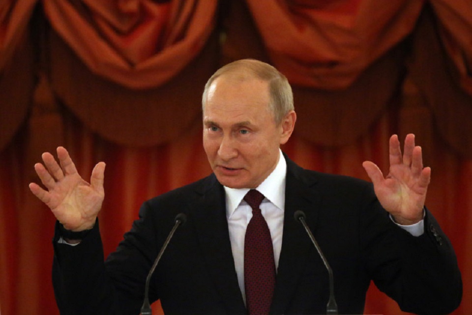 MOSCOW, RUSSIA - MAY,30 (RUSSIA OUT) Russian President Vladimir Putin gestures during the awarding ceremony of the Parental Glory Order at the Grand Kremlin Palace in Moscow, Russia, May,30, 2019. Vladimir Putin presented the Order of Parental Glory to families with seven and more children as a part of celebration of upcoming International Children's Day. Photo by Mikhail Svetlov/Getty Images