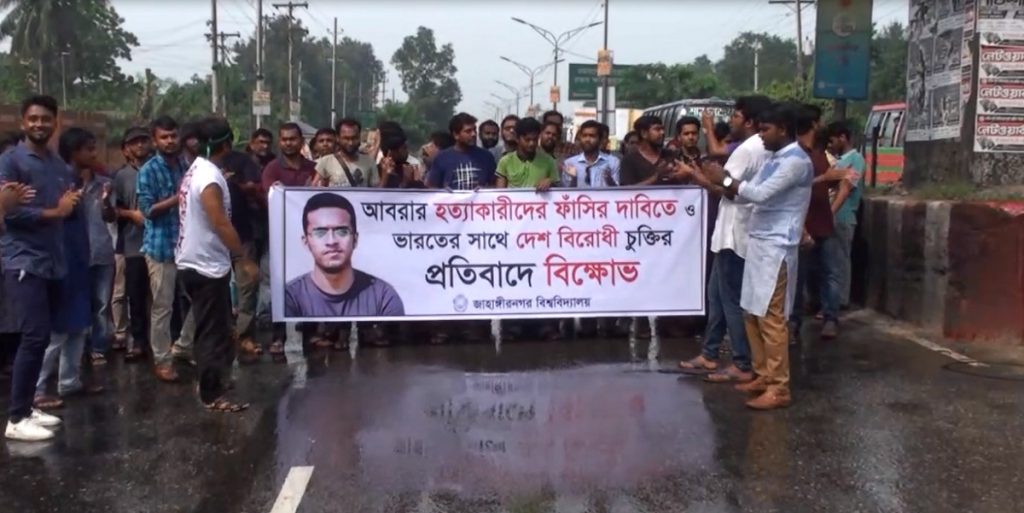 বুয়েট শিক্ষার্থী আবরার ফাহাদের হত্যার প্রতিবাদে বিক্ষোভ মিছিলসহ ঢাকা-সাভার মহাসড়ক অবরোধ করেছে জাহাঙ্গীরনগর বিশ্ববিদ্যালয়ের শিক্ষার্থীরা। এসময় শিক্ষার্থীরা আবরার হত্যাকারীদের ফাঁসির দাবি জানান।