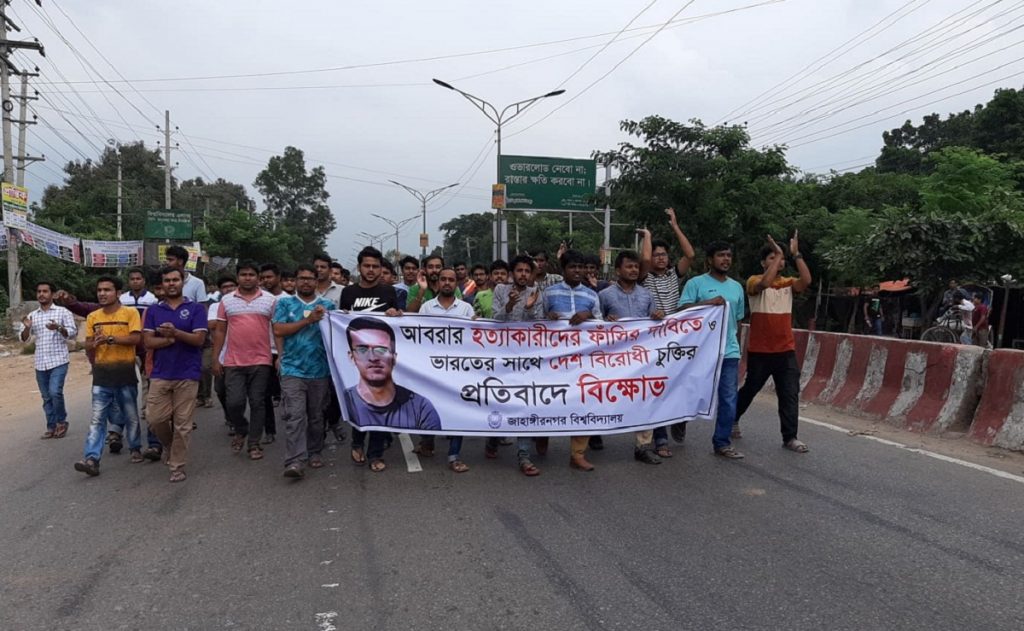 শিক্ষার্থী আবরার হত্যার ঘটনায় দোষীদের সর্বোচ্চ শাস্তি নিশ্চিতের দাবিতে দ্বিতীয় দিনের মতো আজও জাহাঙ্গীরনগর বিশ্ববিদ্যালয়ের শিক্ষার্থীরা বিক্ষোভ মিছিল করেছে।