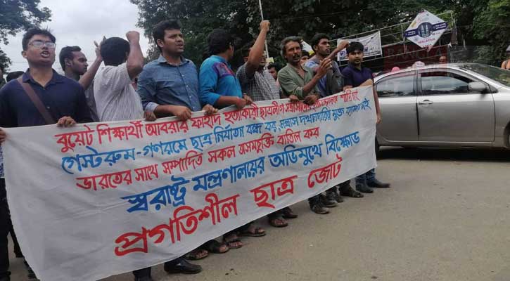এর আগে বুধবার দুপুরে মধুর ক্যান্টিন থেকে বিক্ষোভ মিছিল শুরু করে প্রগতিশীল ছাত্রজোট। মিছিলটি ক্যাম্পাসের বিভিন্ন সড়ক প্রদক্ষিণ করে।