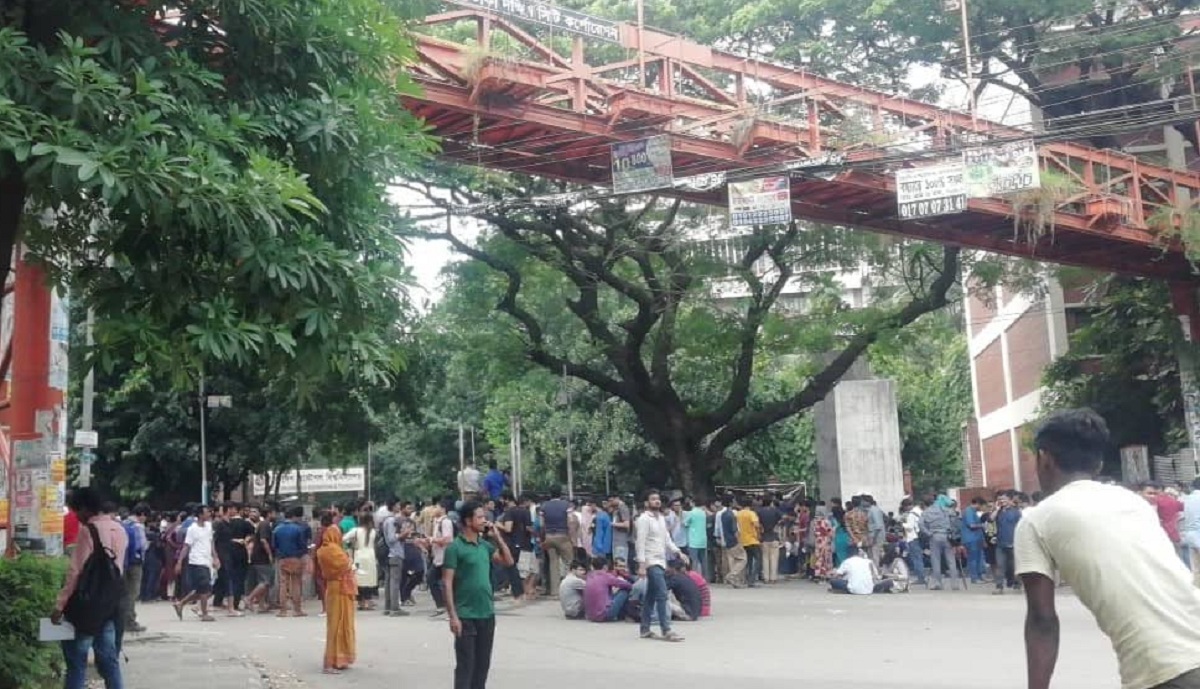 আবরার ফাহাদ কিলিং মিশনে চিহ্নিতদের আজীবন বহিষ্কার ও বুয়েটে ছাত্র রাজনীতি নিষিদ্ধসহ ১০ দফা দাবিতে পলাশী মোড় অবরোধ করে রেখেছে শিক্ষার্থীরা। এর আগে, এসব দাবি পূরণে ৭ দিনের সময় বেঁধে দিয়ে সংবাদ সম্মেলন করেন আন্দোলনকারীরা। দাবি আদায় না হওয়া পর্যন্ত লাগাতার আন্দোলন চলবে বলে জানায় শিক্ষার্থীরা।