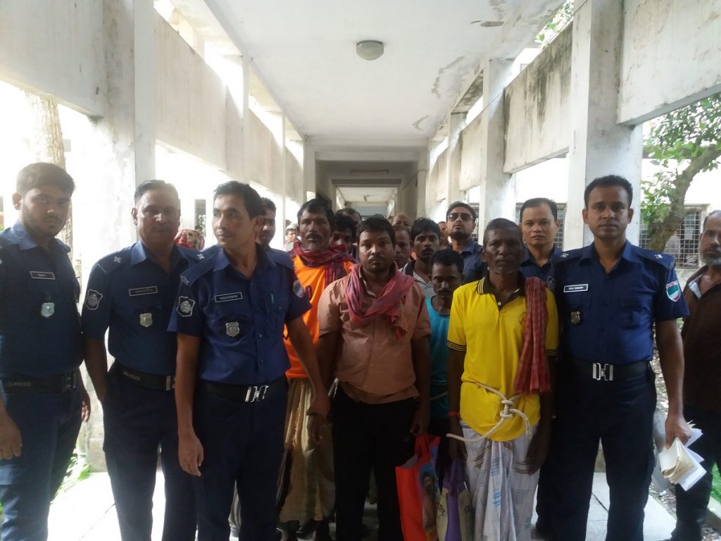 আটক জেলেরা হলো সিদ্বিরশর গানা (৫৪), শ্রী কৃষ্ঞ (৫৩), দিপক বাড়ই (৩৫), রামকৃষ্ঞ দাস (৩০), হরিপ্রধান (৫৭), সুভাষ পাল (৫২), মাইনু হানবেগ (৫৮), পিন্টু মন্ডল (৪৮), জন্টু মৃধা (৫৫), প্রদিপ পাল (৩৫) ও গোকুল দলপতি (৩৭)। পরে নৌবাহিনী আটক জেলেদেরকে মোংলা থানা পুলিশে হস্তান্তর করলে পুলিশ বিকালে তাদের বাগেরহাট আদালতে পাঠায়। আদালত তাদেরকে জেলহাজতে প্রেরণ করেছে।