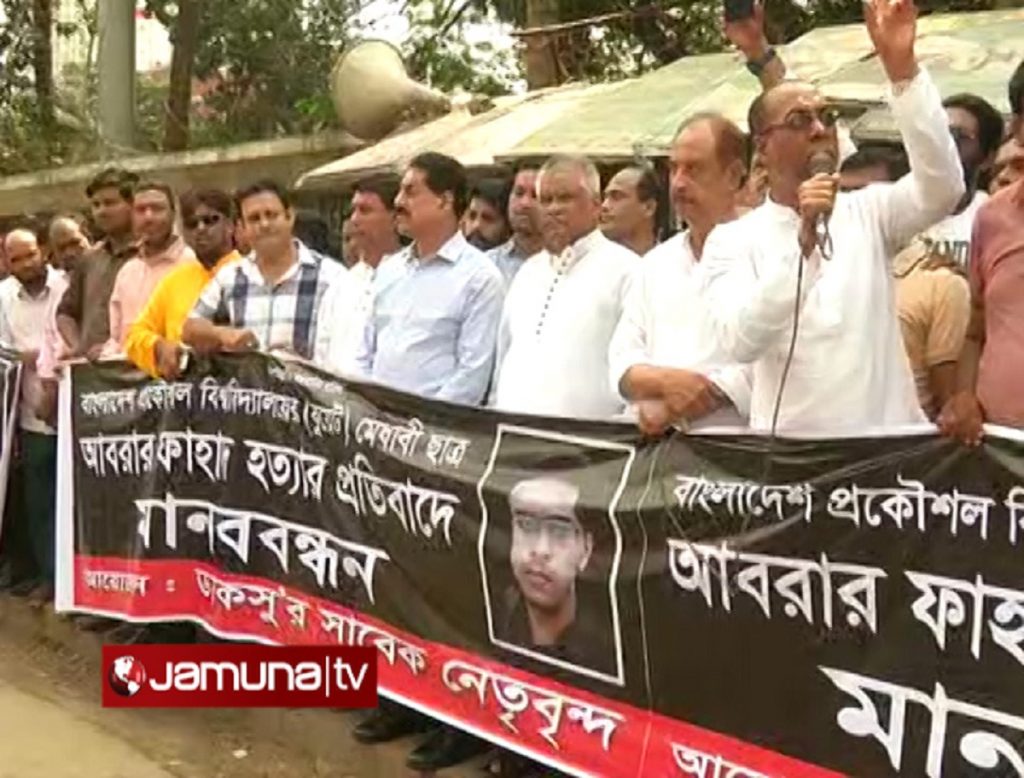 সকালে বুয়েট শিক্ষার্থী আবরার ফাহাদ হত্যার প্রতিবাদে সাবেক ডাকসু নেতৃবৃন্দ আয়োজিত মানববন্ধনে এমন মন্তব্য করেন তারা।