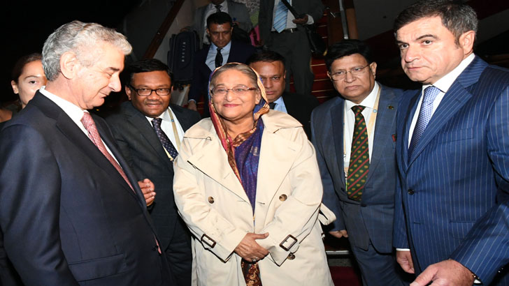 প্রধানমন্ত্রী ও তার সফরসঙ্গীদের বহনকারী বিমান বাংলাদেশ এয়ারলাইন্সের বিশেষ ফ্লাইট বৃহস্পতিবার স্থানীয় সময় রাত ৯টায় বাকু হায়দার আলিয়েভ আন্তর্জাতিক বিমানবন্দরে অবতরণ করে।