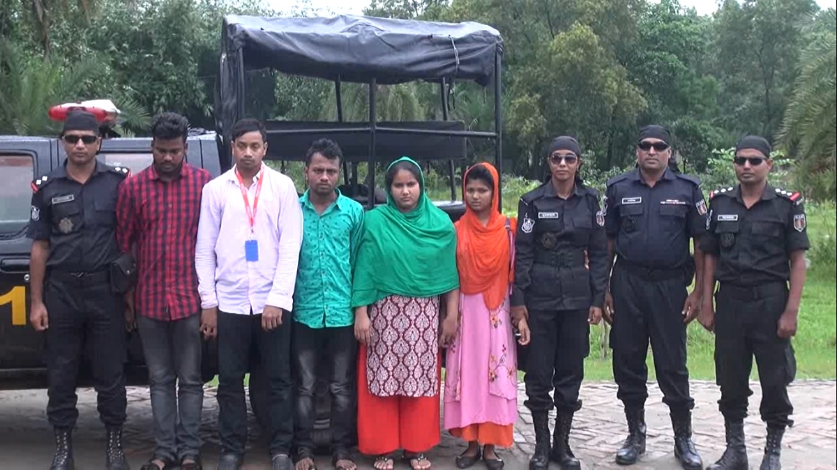 আটককৃতরা হলেন, শাহীন আলম, মো. সোহেল, সঞ্জয় কুমার দাস, সোহেলের স্ত্রী সাহিদা বেগম ও সাবিনা আক্তার বর্ষা।