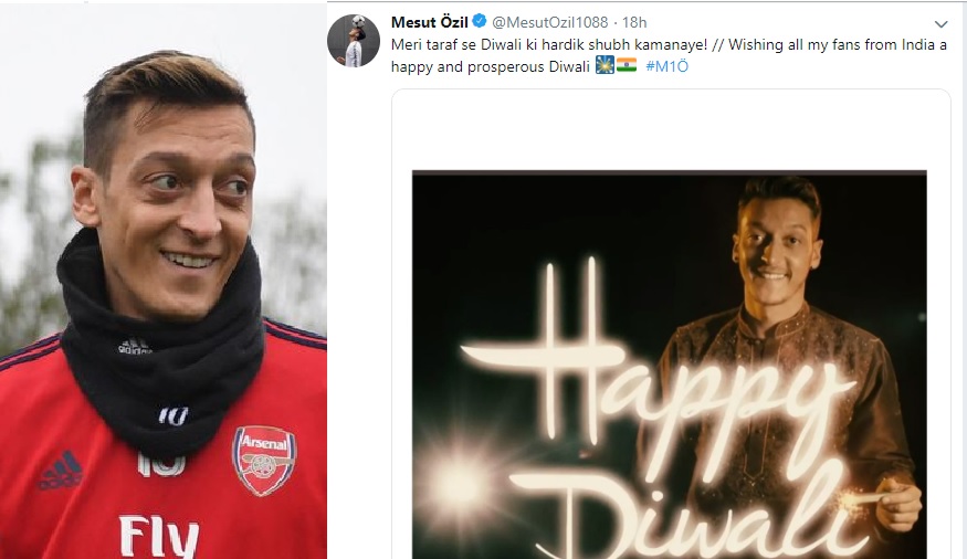 তবে টুইটের মাধ্যমে অভিনব বার্তা এসেছে জার্মানির ফুটবলার মেসুত ওজ়িলের কাছ থেকে। তিনি লিখেছেন, ‘‘মেরি তরফ সে দিওয়ালি কি হার্দিক শুভ কামনায়ে। আমার তরফ থেকে দিওয়ালির শুভকামনা। ভারতে আমার ভক্তদের জানাই দিওয়ালির শুভেচ্ছা।’’ ওজ়িলের করা সেই টুইটে সাড়া পড়ে গিয়েছে সোশ্যাল মিডিয়ায়!