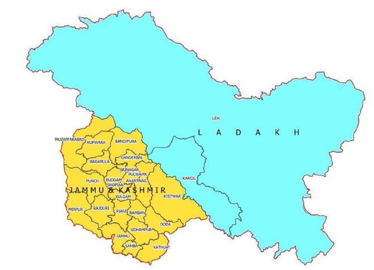 ভারতের মানচিত্রে আঁকা হলো দ্বিখণ্ডিত জম্মু-কাশ্মির। নতুন মানচিত্রে উপত্যকার জম্মু-কাশ্মির এবং লাদাখকে দেখানো হয়েছে পৃথক দুই কেন্দ্রশাসিত অঞ্চল হিসেবে।