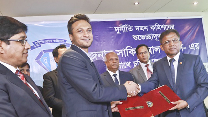 রোববার সকাল পৌনে ১১টায় দুদকের শুভেচ্ছা দূত সাকিব সেগুনবাগিচার কার্যালয়ে আসেন।