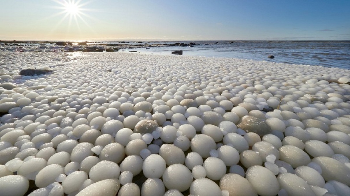 ফিনল্যান্ডের একটি সৈকত হঠাৎ করেই ঢেকে গেছে বরফ ডিমে। এক পর্যটক দম্পতির সামনে এমন দৃশ্য পড়লে তারা অবাক হয়ে যান। অপার বিস্ময় ও মুগ্ধতা মিলিয়ে তারা এই মনোরম দৃশ্যকে ক্যামেরাবন্দি করেন। বিশেষজ্ঞরা বলছেন, অতি বিশেষ পরিস্থিতির কারণেই এমনটি ঘটেছে।