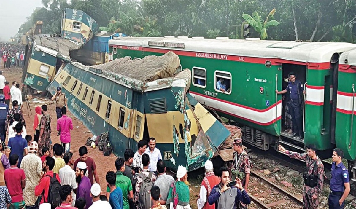 ব্রাহ্মণবাড়িয়ার কসবা উপজেলায় দুই ট্রেনের সংঘর্ষে ১৬ জন নিহত হয়েছেন। ঘটনাস্থলে ১০ এবং হাসপাতালে নেয়ার পর ছয়জনের মৃত্যু হয়। আহত হয়েছেন ৭৪ জন। সোমবার রাত পৌনে ৩টার দিকে ঢাকা-চট্টগ্রাম রেলপথের মন্দবাগ রেলওয়ে স্টেশনের লুপলাইনের মুখে আন্তঃনগর উদয়ন এক্সপ্রেস ও তূর্ণা এক্সপ্রেসের মধ্যে এ দুর্ঘটনা ঘটে।