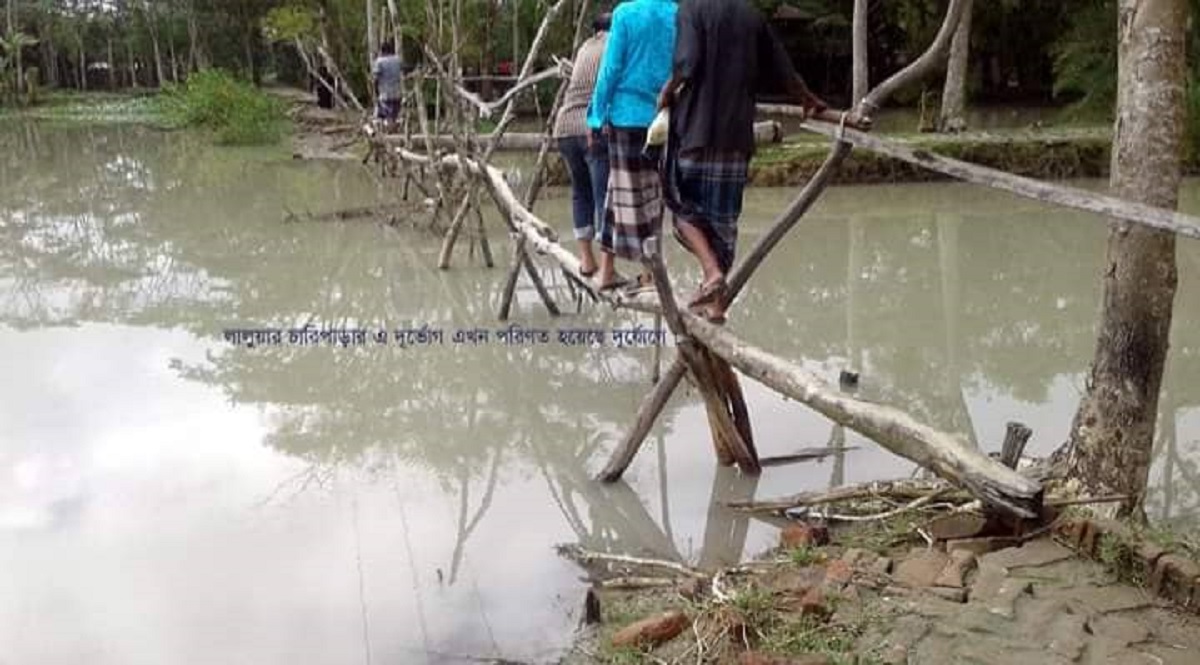 বানাতিপাড়া বেড়িবাঁধ থেকে রাবনাবাদ পাড়ের চারিপাড়া প্রাইমারি স্কুল পর্যন্ত সড়কটির দূরত্ব হবে মাত্র দেড় কিলোমিটার। ইট বিছানো এ সড়ক দিয়ে ওই এলাকার শত শত জেলে, কৃষক পরিবারের মানুষসহ তাঁদের সন্তানরা নির্বিঘ্নে চলাচল করত। মোটরসাইকেলসহ যানবাহন চলাচল করত। সিডর তাণ্ডবের পরে লালুয়া ইউনিয়নের চারিপাড়া পয়েন্টে বেড়িবাঁধ জলোচ্ছ্বাসে ভেঙে যায়। ভেঙ্গে যাওয়া বিভিন্ন পয়েন্টে স্থানীয়রা নিজেদের উদ্যোগে ১৪টি সাঁকো দেয়। মাত্র দেড় কিমি সড়কে এখন কাদামাটির পরও ১৪টি সাঁকো পার হতে হয় স্থানীয়দের।
