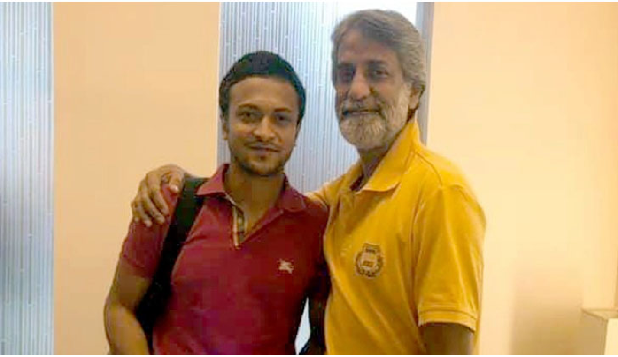 বিসিবির লজিস্টিক ম্যানেজার ওয়াসিম খান রাত সোয়া ১টার দিকে নিজের ফেসবুক প্রোফাইলে সাকিবের সঙ্গে একটি ছবি আপলোড করেছেন।