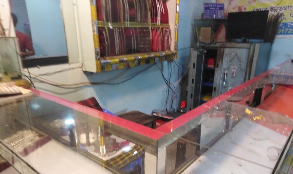 শুক্রবার সন্ধ্যা সাড়ে ৭টার দিকে এ ঘটনা ঘটে। এ ঘটনায় দোকান মালিক দেবেন্দ্র কর্মকার দেবু গুলিবিদ্ধ হয়।