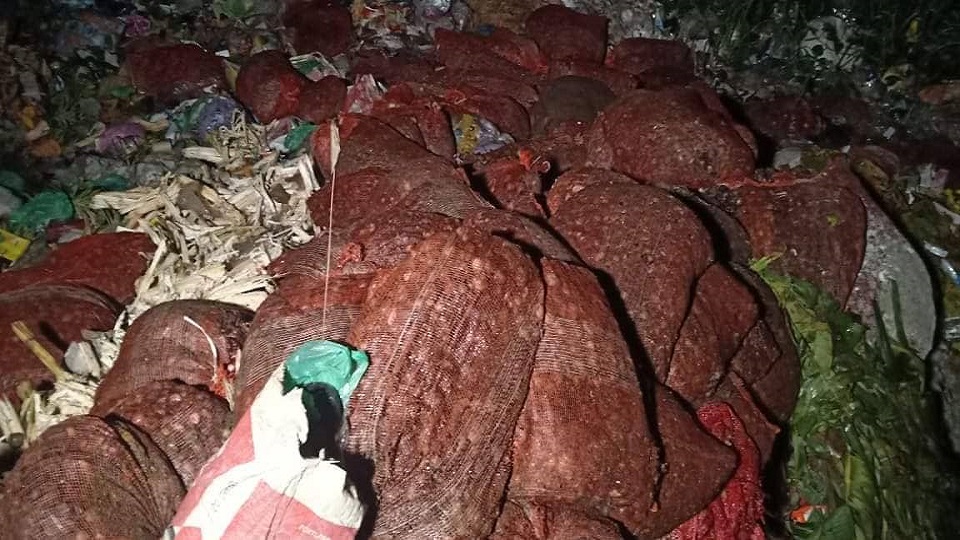 কুমিল্লায় আবর্জনার স্তুপে ফেলে দেয়া হয়েছে ৭০ বস্তা পঁচা পেঁয়াজ।