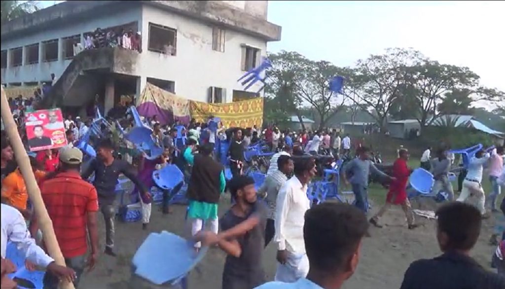 স্থানীয় সূত্রে জানা গেছে, বিকেল তিনটার দিকে আওয়ামী লীগ নেতা মুক্তিযোদ্ধা বদিউর রহমান বন্টিনের সভাপতিত্বে এমইউ মাধ্যমিক বিদ্যালয় প্রাঙ্গণে এ সম্মেলন শুরু হয়। দ্বিতীয় পর্বে সভাপতি-সাধারণ সম্পাদক নির্ধারণের ক্ষেত্রে একাধিক প্রার্থী থাকায় ভোটের ঘোষণা দেয়া হয়। এরপরই চেয়ার ছোড়াছুড়ি শুরু হয়। ইউপি চেয়ারম্যান ও সভাপতি প্রার্থী রিন্টু তালুকদার এ ঘটনার জন্য অপর সভাপতি প্রার্থী ও জেলা পরিষদ সদস্য এসএম মোশাররফ হোসেনকে দায়ি করেন। তবে মোশাররফ হোসেনও পাল্টা অভিযোগ করে ইউপি চেয়ারম্যানকে দায়ি করেন এ ঘটনার জন্য। পরিকল্পিতভাবে চেয়ারম্যানের গ্রুপ এ অবস্থা করেছে অভিযোগ মোশাররফের। বর্তমানে পুলিশের হস্তক্ষেপে পরিস্থিতি অনেকটা শান্ত রয়েছে। তবে এলাকায় থমথমে অবস্থা বিরাজ করছে।