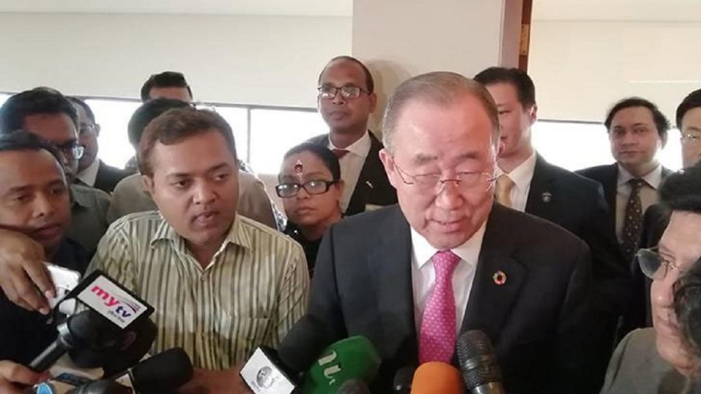 উল্লেখ্য, চলতি বছরের ৯ জুলাই জলবায়ুবিষয়ক বৈশ্বিক অভিযোজন কমিশনের সম্মেলনে যোগ দিতে ঢাকায় এসেছিলেন বান কি মুন। ওই সফরের সময় মিয়ানমার থেকে প্রাণ বাঁচাতে বাংলাদেশে পালিয়ে আসা রোহিঙ্গাদের খোঁজখবর নিতে তিনি কক্সবাজার গিয়েছিলেন। এর আগে ২০১১ সালে জলবায়ুবিষয়ক সম্মেলনে যোগ দিতেও ঢাকায় এসেছিলেন তিনি।