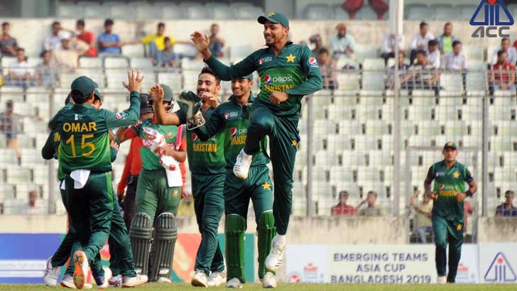 ইমার্জিং টিমস এশিয়া কাপের ফাইনালে বাংলাদেশকে ৭৭ রানে হারিয়ে শিরোপা ঘরে তুললো পাকিস্তান। ১১৩ রানের ইনিংসে ম্যাচ সেরা হয়েছেন রোহাইল নাজির।