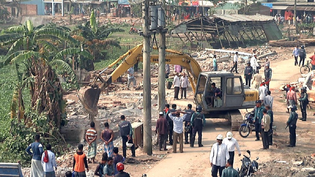 এখানে ১২টি বসতঘর, মুক্তিযোদ্ধা সংসদ সহ ৩টি রাজনৈতিক কার্যালয়, ১টি স মিল, ১টি মাছ বাজার ও ১০৩টি দোকানঘর সহ মোট ১২০টি অবৈধ স্থাপনা ছিল বলে জানিয়েছেন জেলা প্রশাসনের নির্বাহী ম্যাজিস্ট্রেট রাসেল ইকবাল। তিনি জানান, অবৈধ স্থাপনা উচ্ছেদের পর জমি গণপূর্ত বিভাগকে বুঝিয়ে দেয়া হবে।