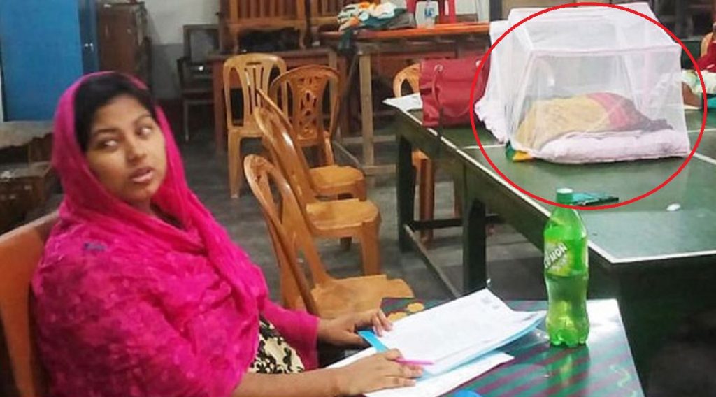 পাশেই তার শিশুকে রাখার ব্যবস্থাও ছিল। ঘুম পাড়িয়ে মাঝে মাঝে পিংকি শিশুটিকে বুকের দুধ খাইয়েছেন।