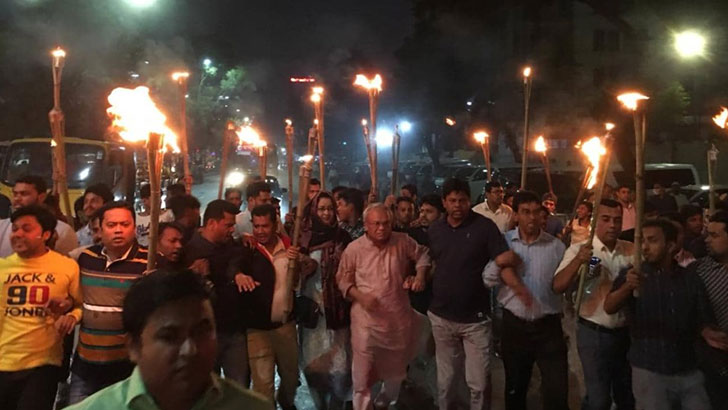 খালেদা জিয়ার মুক্তির দাবিতে রাজধানীতে মশাল মিছিল