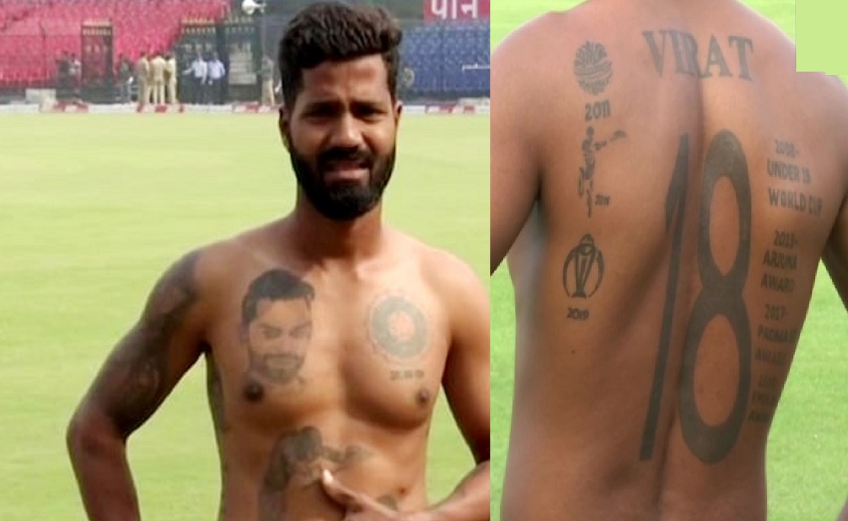 সেলিব্রেটিদের অনেক ধরনের ফ্যান থাকে। পছন্দের মানুষের জন্য ফ্যানদের রয়েছে অনেক খেয়ালিপনা। তেমনি এক কাণ্ড করে বসেছেন ভারতীয় ক্রিকেট দলের অধিনায়ক বিরাট কোহলির এক ভক্ত। কোহলির এক ভক্ত পিন্টু বহেরা সারা শরীরে এঁকেছেন ১৬টি ট্যাটু। সবগুলোই বিরাট কোহলিকে নিয়ে। ভারত অধিনায়কের প্রতি সম্মান জানাতে ওই ট্যাটুগুলি করিয়েছেন বলে জানায় এই ভক্ত।