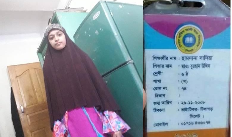 গতকাল শুক্রবার সন্ধ্যায় সিলেট শহরের টিলাগড় এলাকা থেকে হামদানা সাদিয়া নামে এক স্কুলছাত্রী নিখোঁজ হয়েছে। সে টিলাগড় মসজিদের ইমাম মাওলানা বুরহান উদ্দিনের মেয়ে।