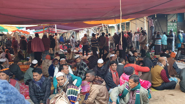 প্রচণ্ড শীতের মধ্যেও দাবি আদায়ে নিজ নিজ মিলগেট ছেড়ে যানটি খুলনার শ্রমিকেরা। দাবি পূরণে আন্দোলনে অনড় রাজশাহী, চট্টগ্রাম আর নরসিংদীর শ্রমিকরাও।