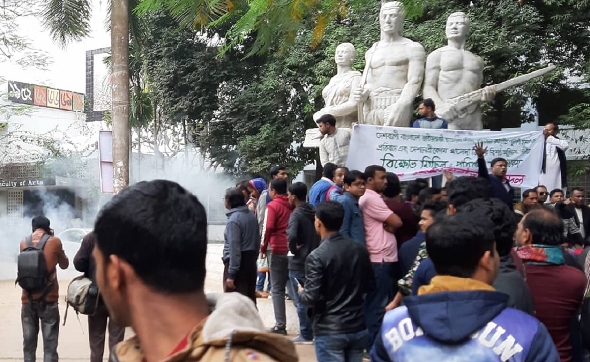 ছাত্রদলের প্রতিষ্ঠাবার্ষিকীতে দেশের বিভিন্ন স্থানে হামলার প্রতিবাদ এবং খালেদা জিয়ার মুক্তির দাবিতে পূর্বঘোষিত কর্মসূচি অনুযায়ী সকাল ১১টার দিকে মিছিল বের সংগঠনটির নেতাকর্মীরা। মধুর ক্যান্টিন থেকে মিছিলটি বের হয়ে কলা ভবনের পেছনের গেইট অতিক্রম করার সময় ডাকসু ভবনের পাশে দুইটি ককটেল বিস্ফোরিত হয়। পরে মিছিল শেষ করে অপরাজেয় বাংলার পাদদেশে সমাবেশ করে ছাত্রদল। সেসময় তাদের সমাবেশস্থলের পাশেই আরেকটি ককটেলের বিস্ফোরণ হয়। এসময় ছাত্রদলের নেতাকর্মীরা এদিক-ওদিক ছুটাছুটি করে। এর কিছুক্ষণ পর সমাবেশ শেষ করে তারা। তবে এসব ঘটনায় কেউ আহত হয়নি।