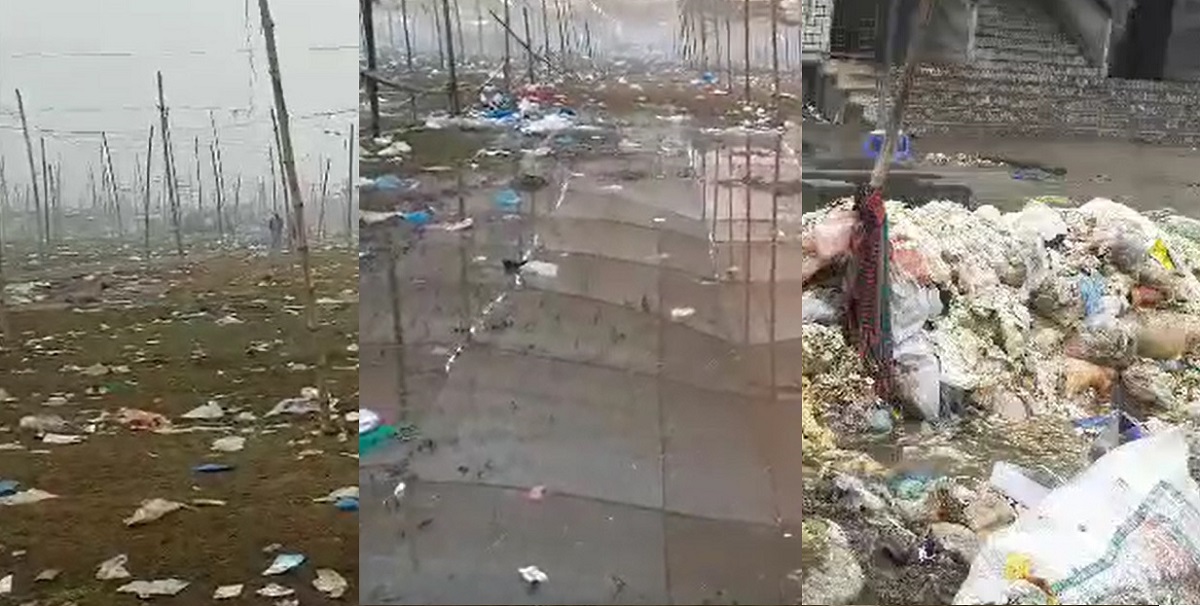 সোমবার সকালে ইজতেমা ময়দান ঘুরে দেখা যায়, মূল মঞ্চসহ আশপাশের এলাকা নোংরা পানিতে প্লাবিত। ফেলে রাখা ভাত, তরকারি ও বর্জ্যে ছেয়ে আছে পুরো মাঠ।