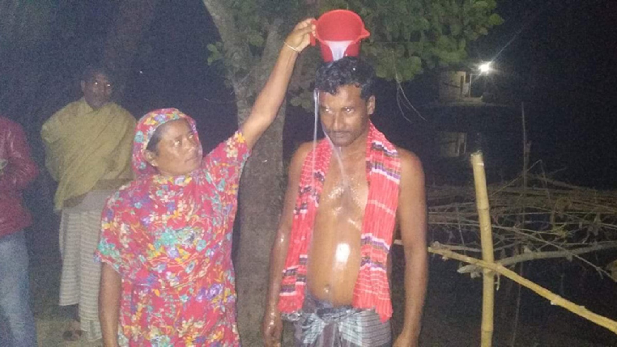 তিনি আরও বলেন, আগের ভুল থেকে পরিশুদ্ধ হয়ে নতুন করে জীবন শুরু করতে এই অনুষ্ঠানের আয়োজন করা হয়েছে। গ্রামের মানুষ নিজেরাই আয়োজন করে ডাকঢোল পিটিয়ে খিচুড়ি খেয়েছেন। পাশাপাশি প্রথম স্ত্রী রোববার রাতেই দুধ দিয়ে গোসল করিয়ে আমাকে বরণ করেছেন।