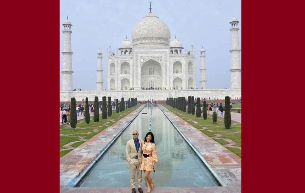 তাজমহলের সামনের ঐতিহাসিক জলাশয়ের সামনে দাঁড়িয়ে ছবি তুলতে দেখা গিয়েছে এই যুগলকে। বিশ্বের বড় বড় তারকাদের মতো তারাও ওই জলাশয় পছন্দ করেছেন। এর আগে ভারত সফরে গিয়ে যুবরাজ উইলিয়ামস আর যুবরানি কেট, একই জায়গায় দাঁড়িয়ে ছবি তুলেছিলেন। সোশ্যাল মিডিয়াতে পোস্ট করা একটা ছবিতে দেখা গিয়েছে, সাধারণ স্যুটে অ্যামাজন কর্তা। আর কমলা-সাদা পোশাকে লরেন সানচেজ। ৩৩৮ বছরের পুরনো ওই সৌধের সামনে দুজনেই হাসিমুখে দাঁড়িয়ে। একটু রোম্যান্টিক লরেন। হাসি মুখে দেখছেন বেজোসকে।