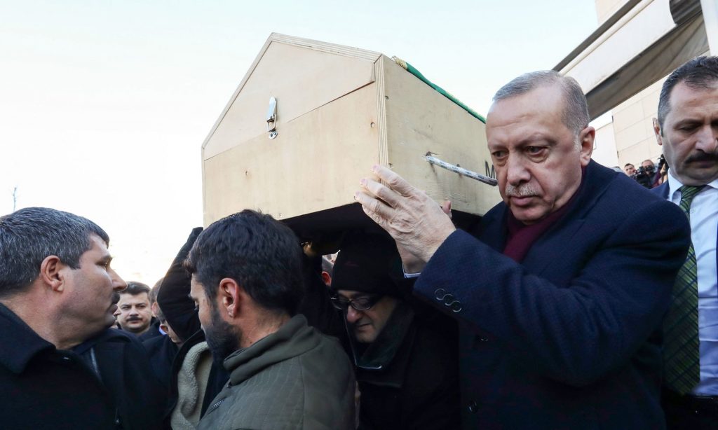 পশ্চিম তুরস্কের এলাজিগ প্রদেশে ভূমিকম্পে নিহত দুই ব্যক্তির জানাজার পর তাদের মরদেহ কাঁধে নিয়ে কবরে নিয়ে যেতে দেখা গেছে তুরস্কের প্রেসিডেন্ট রিসেপ তাইয়েপ এরদোগানকে।
