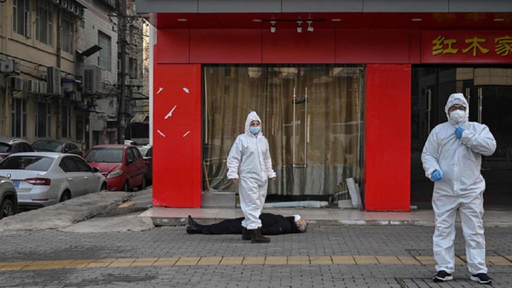 প্রাণঘাতী করোনাভাইরাস ছড়িয়ে পড়া উহানে মুখে মাস্ক, হাতে প্লাস্টিকের বাজারব্যাগ নিয়ে সাদা চুলের এক বৃদ্ধ মরে পড়ে আছেন। ভুলেও তার কাছে কেউ যাচ্ছেন না। নিজেদের মতো গন্তব্যে চলে যাচ্ছেন পথচারীরা।