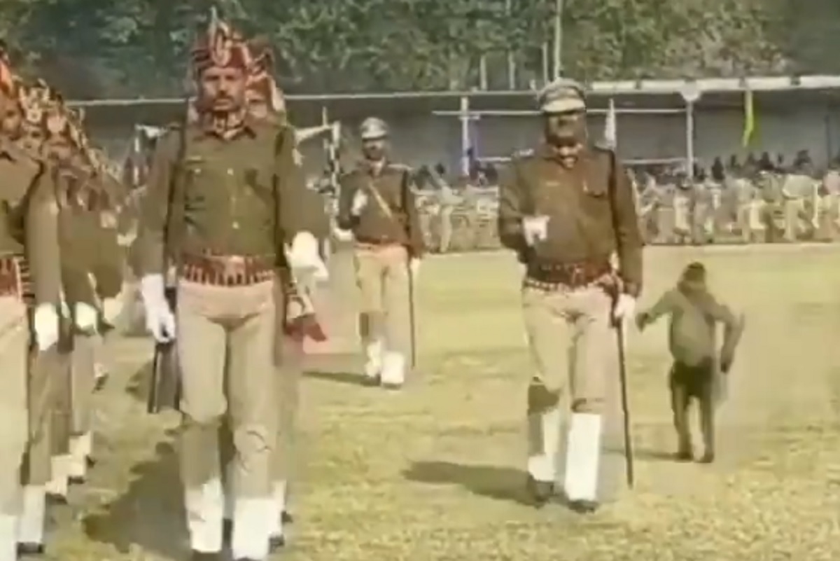 মাঠে মহড়া দিচ্ছিল একদল ভারতীয় পুলিশ। হঠাৎ পেছন থেকে এক পুলিশ সদস্যের ওপর হামলে পড়ে হনুমান। তার সজোরে লাথিতে ভার সামলাতে না পেরে মুখ থুবড়ে পড়ে যান ওই পুলিশকর্মী। খবর এনডিটিভির।