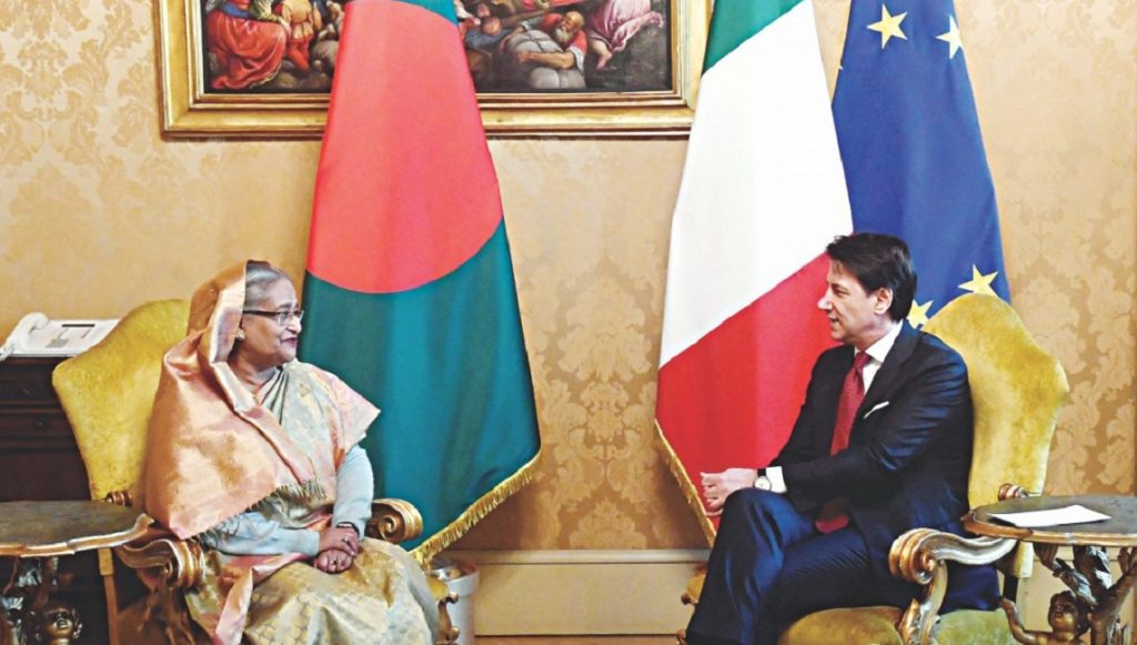 বুধবার রোমে প্রধানমন্ত্রী শেখ হাসিনার সাথে দ্বিপক্ষীয় বৈঠকে এ আশ্বাস দেন ইতালির প্রধানমন্ত্রী জিউসেপ কোঁতে।