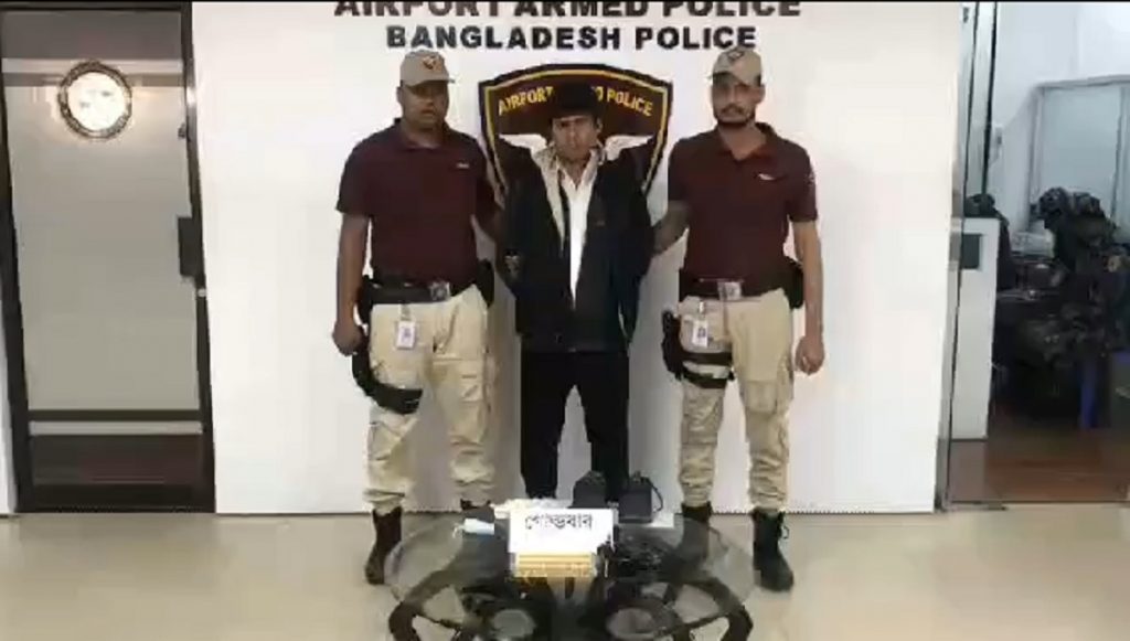 হজরত শাহজালাল আন্তর্জাতিক বিমানবন্দরে ৩ কেজি ৭ শত ১২ গ্রাম সোনারবারসহ বিমানের পরিচ্ছন্নতাকর্মীকে আটক করেছে বিমানবন্দর আর্মড পুলিশ। আজ (বৃহস্পতিবার) সকাল ৯ টা ২০ মিনিটের সময় বিমানবন্দরের কনকোর্স হলে বিমানের পরিচ্ছন্নতাকর্মী জনাথন মুক্তি বারিকদার (৩৪) কে জুতার তলায় লুক্কায়িত ৩২ টি সোনার বারসহ আটক করা হয় বলে নিশ্চিত করেছেন বিমানবন্দর আর্মড পুলিশের অতিরিক্ত পুলিশ সুপার মোঃ আলমগীর হোসেন।