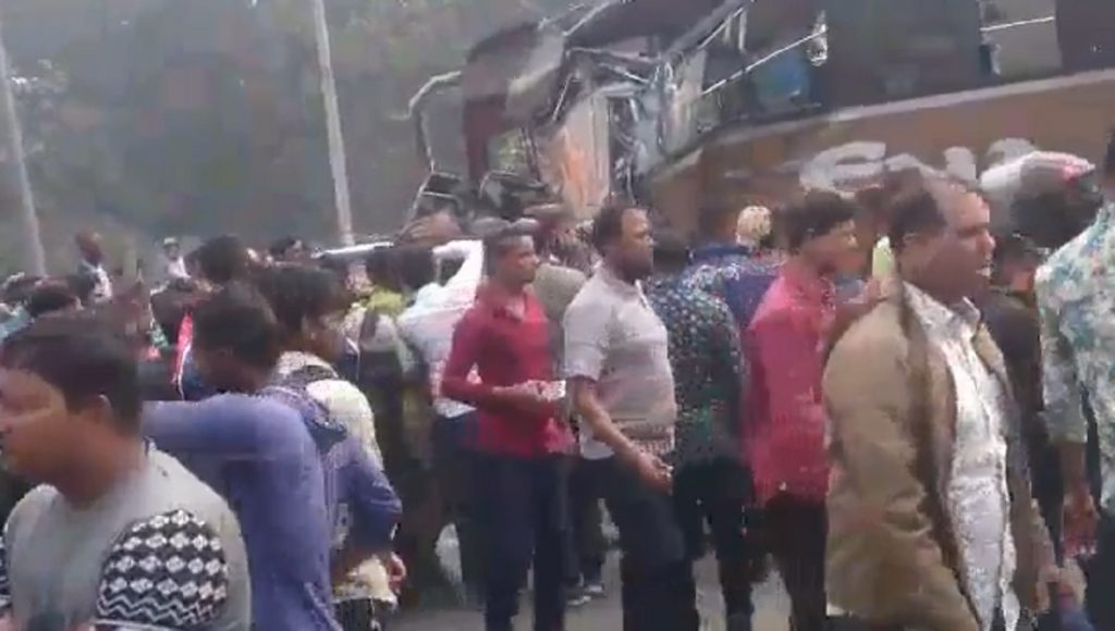 আজ সকালে ঢাকা-ময়মনসিংহ মহাসড়কের ভাওয়াল জাতীয় উদ্যানের সামনে এনা পরিবহনের সাথে সংঘর্ষ হয় কাভার্ডভ্যানের। এতে দুমড়েমুচড়ে যায় বাসের সামনের অংশ। ঘটনাস্থলেই নিহত হয় দুই জন। আহতদের হাসপাতালে ভর্তি করা হয়েছে।