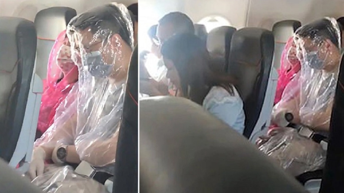 ভিডিওতে দেখা যায়, বিমানে দুই যাত্রীর শরীর আপাদমস্তক ঢাকা। একজনের শরীর প্লাস্টিকের পাতলা আবরণে মোড়ানো। তার পাশে যিনি বসা তিনিও নিজেকে আপাদমস্তক ঢেকে রেখেছেন একটি গোলাপি রঙের প্রতিরোধক স্যুট দিয়ে। তাদের উভয়েরই মুখে রয়েছে মাস্ক ও হাতে গ্লাভস।