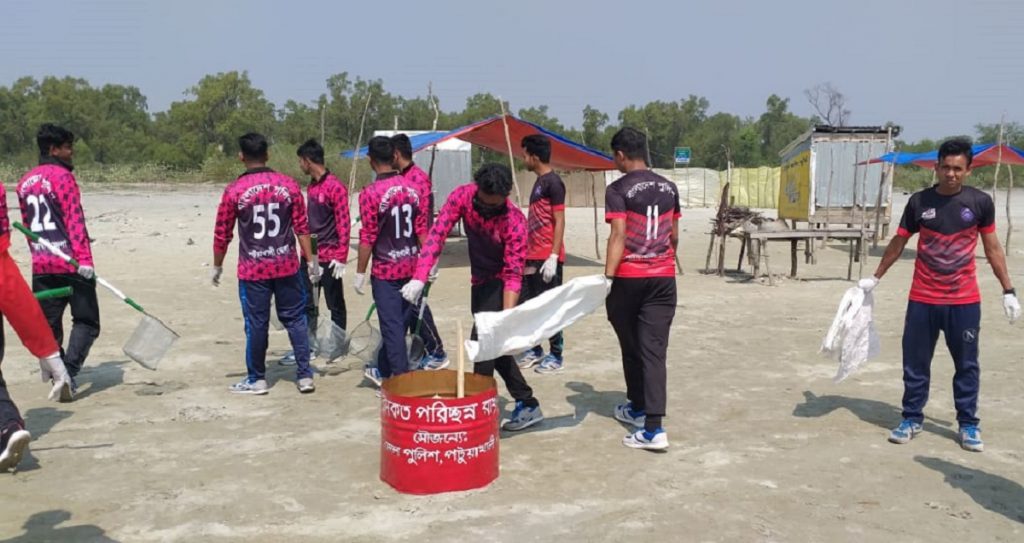 পটুয়াখালীর পর্যটন কেন্দ্র কুয়াকাটায় সৈকতের ৮ কিলোমিটারের প্লাস্টিকের বোতল, বিভিন্ন পলিথিন ও প্লাস্টিক বর্জ্য পরিষ্কার করেছে জেলা পুলিশের খেলোয়াড় দলের সদস্যরা। এছাড়া সৈকতের ময়লা ফেলার জন্য জেলা পুলিশের উদ্যোগে সৈকতের বিভিন্ন স্থানে শতাধিক ডাস্টবিন স্থাপন করা হয়েছে। এতে সৈকতের সৌন্দর্য আরো বৃদ্ধি পাবে বলে করেন সংশ্লিষ্টরা।