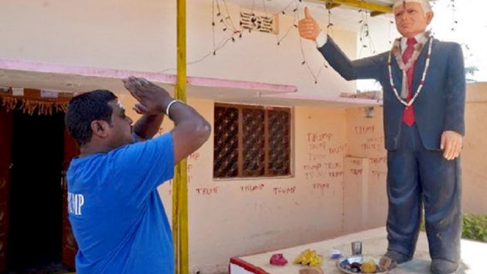 এদিকে ট্রাম্পকে রীতিমতো দেবতার আসনে বসিয়েছেন তেলেঙ্গানার বুসা কৃষ্ণ। বছর চারেক আগে ডোনাল্ড ট্রাম্পের পূজা শুরু করে বিশ্ব গণমাধ্যমে উঠে এসেছিলেন বুসা কৃষ্ণ। তার দাবি, স্বপ্নে পাওয়া নির্দেশনা থেকেই ট্রাম্পকে প্রভু মেনেছেন তিনি।