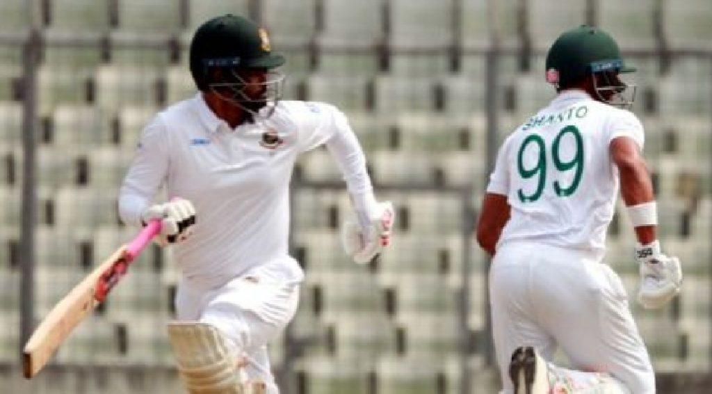 দুই ওপেনারকে হারালেও মিরপুর টেস্টে এখনও ভালো অবস্থান টাইগারদের। ক্রিজে আছেন নাজমুল হোসেন শান্ত ও মুমিনুল হক। তামিম ব্যর্থ হলেও ঠিকই হাফ সেঞ্চুরি তুলে নিয়েছেন দ্বিতীয় উইকেটে তামিমের সঙ্গে ৭৮ রানের জুটি গড়া শান্ত। ম্যাচের ৩৭-তম ওভারে অর্ধশতক তুলে নেন এই বাহাতি ব্যাটসম্যান।