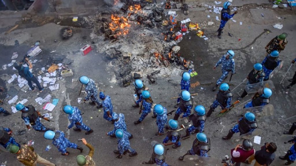 ভারতের সংশোধিত নাগরিকত্ব আইন-সিএএ’কে কেন্দ্র করে রণক্ষেত্রে পরিণত হয়েছে দিল্লি। বিক্ষোভকারীদের সাথে পুলিশসহ বিজেপি সমর্থকদের সংঘর্ষে নিহতের সংখ্যা বেড়ে দাঁড়িয়েছে ১০ জনে। সন্ধ্যার দিকে উত্তেজনাপ্রবণ এলাকাগুলিতে জারি হয়েছে কারফিউ। সূত্র: আনন্দবাজার।