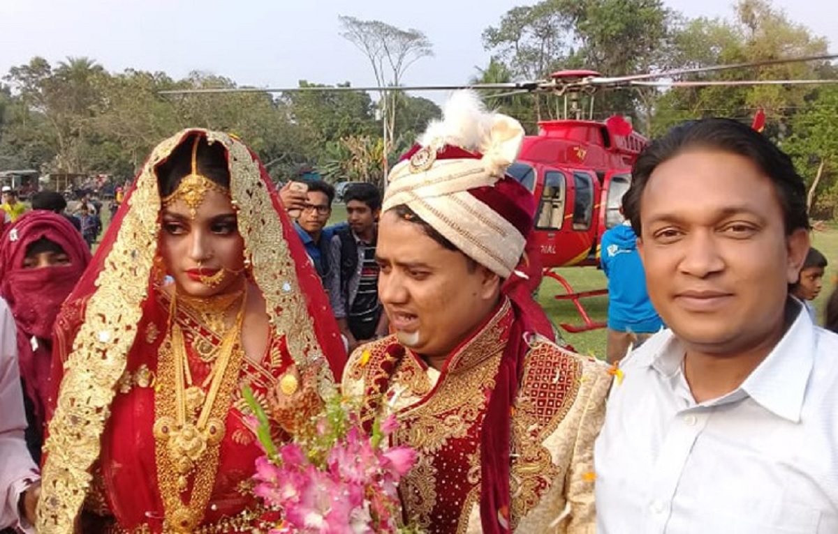 বরের বাড়ি থেকে কনের বাড়ির দূরত্ব মাত্র ৬ কিলোমিটার। তারপরও হেলিকপ্টারে চড়ে বিয়ে করতে গেলেন বর। শুধু তাই নয়, বাড়ি থেকে হেলিকপ্টার পযন্ত তিনি আসেন বাদ্য-বাজনা বাজিয়ে পালকীতে চেপে। একই ভাবে হেলিকপ্টার থেকে নেমেও তিনি পালকীতে চেপেই কনের বাড়ি যান। কনের বাড়ির এলাকায় হেলিকপ্টারে পৌঁছতে বরের সময় লেগেছে মাত্র ৪ মিনিট।