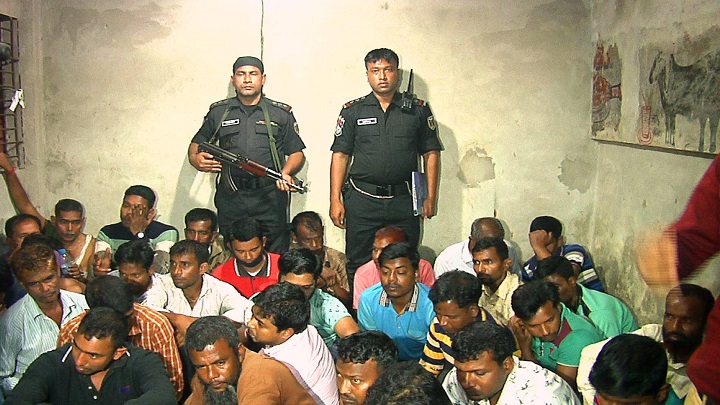 বুধবার রাতে ট্রাক টার্মিনালের ভেতরে ট্রাকশ্রমিকদের বিশ্রামাগারে জুয়ার আসরে অভিযান চালিয়ে তাদের আটক করেন র‍্যাপিড অ্যাকশন ব্যাটালিয়ন- র‍্যাব এর সদস্যরা।
