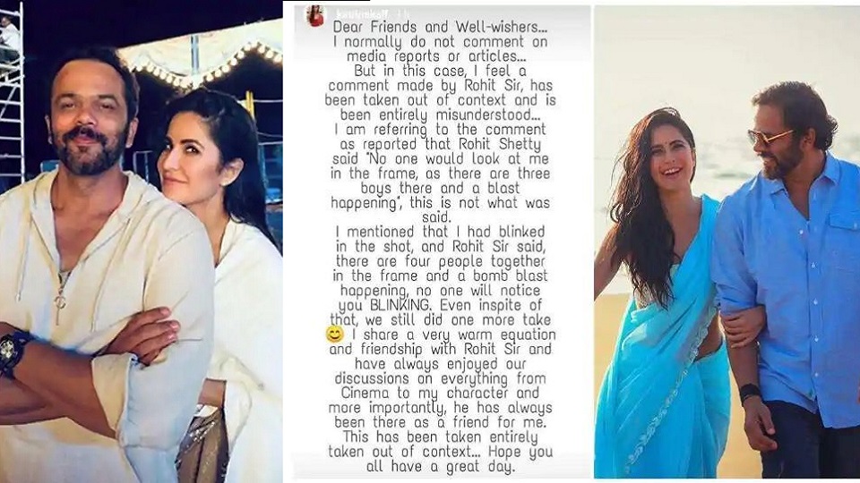 এরপরই ক্যাটরিনা এক ইন্সটাগ্রাম পোস্টে বলেন, রোহিত শেট্টির কথার ভুল ব্যাখ্যা করা হয়েছে। আমি একটি শটে অকারণেই চোখের পাতা পিটপিট করি। সেই প্রসঙ্গেই কথা বলতে গিয়ে রোহিত বলেন, ‘যে একই সঙ্গে ফ্রেমে অক্ষয়, অজয়, আমি এবং রণবীর থাকলে সামান্য চোখের পাতা পড়া কেউ আর লক্ষ্য করবে না।‘ একই সঙ্গে ক্যাট জানান, রোহিতের সঙ্গে তাঁর সম্পর্ক খুবই ভালো। এই সব ভুল বোঝাবুঝির কোনও জায়গা নেই সেখানে।