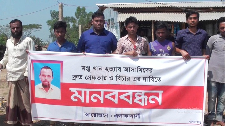 মানববন্ধনে বক্তব্য রাখেন ইউপি সদস্য রেজু আহমেদ, সাবেক ইউপি চেয়ারম্যান নায়েব আলী তালুকদারসহ স্থানীয় লোকজন। এ সময় বক্তারা বলেন, যারা মঞ্জু খানকে পিটিয়ে হত্যা করেছে তারা মামলা করায় বাদী পক্ষকে হুমকী ধামকী দেয়া হচ্ছে। আসামীদের দ্রুত গ্রেফতার করে বিচারের আওতায় আনার দাবী জানান তারা।