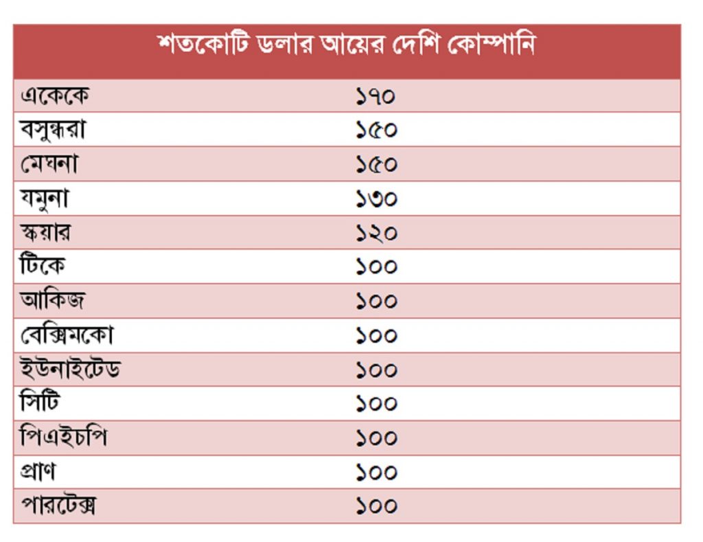‘বাংলাদেশ’স জার্নি টু মিডল-ইনকাম স্ট্যাটাস: দ্য রোল অব দ্য প্রাইভেট সেক্টর’ শীর্ষক ওই প্রতিবেদনে বলা হয়েছে, এসব প্রতিষ্ঠানের প্রায় সবই পারিবারিক ব্যবসা। এর মধ্যে সবচেয়ে বেশি বার্ষিক আয় এ কে খান অ্যান্ড কোম্পানি লিমিটেডের (একেকে)। ব্যক্তি খাতে নেতৃত্বদাতা শতকোটি ডলারের বেশি আয়ের অপর প্রতিষ্ঠানগুলোর মধ্যে এরপরই আছে বসুন্ধরা, মেঘনা, যমুনা, স্কয়ার গ্রুপ, টিকে গ্রুপ, আকিজ গ্রুপ, বেক্সিমকো, ইউনাইটেড গ্রুপ, সিটি গ্রুপ, পিএইচপি গ্রুপ, প্রাণ ও পারটেক্স।