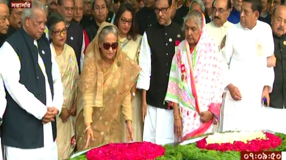 এরপর একে একে শ্রদ্ধা জানান জাতীয় সংসদের স্পিকার ও প্রধান বিচারপতি।এরপর, আওয়ামী লীগের বিভিন্ন সহযোগী সংগঠন ও সর্বস্তরের মানুষ সেখানে ফুল দেন।