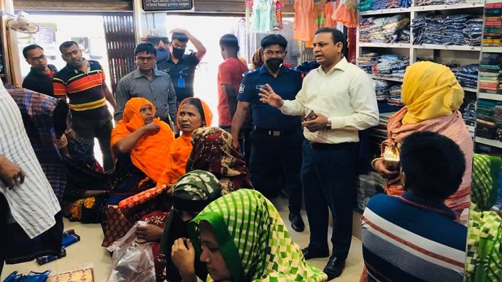 পরে সেখানে অভিযান চালিয়ে কাপড় ব্যবসায়ী ফয়েজ উদ্দিনকে ১০ হাজার টাকা জরিমানা করা হয়েছে এবং ব্যবসায়ীদের করোনাভাইরাস সমন্ধে সচেতন করা হয়েছে।