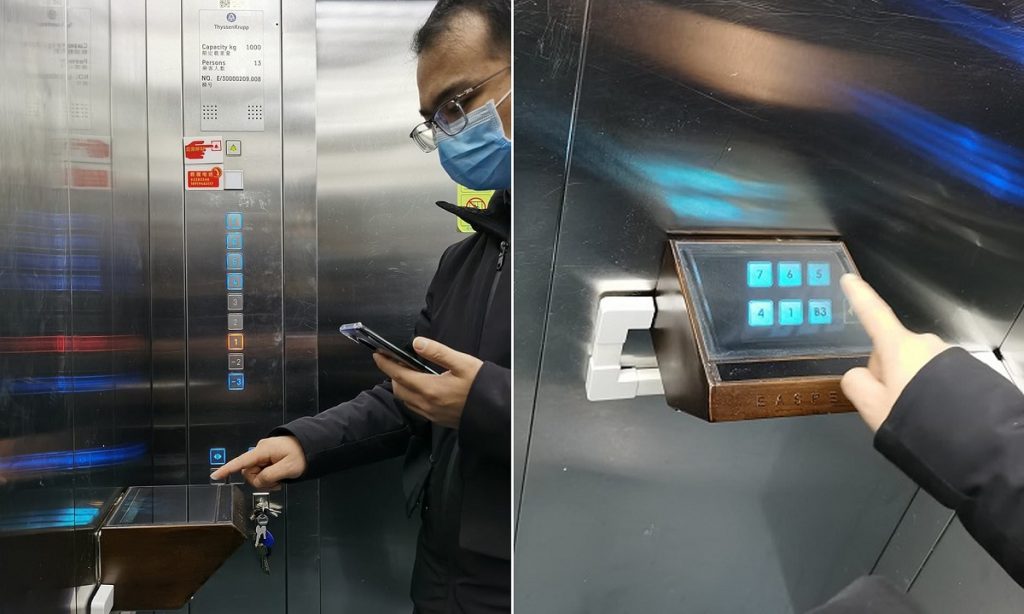 লিফটের বাটন চাপার মাধ্যমেই নাকি চীনে ছড়িয়েছে, করোনাভাইরাস। কিন্তু, বহুতল ভবন হেঁটে ওঠা বা লিফট বন্ধ রাখা অসম্ভব ব্যাপার! তাই, ব্যতিক্রমী নানা পন্থা বের করলো দেশটির অধিবাসীরা। একইসাথে, পথচারীদের শরীরের তাপমাত্রা পর্যবেক্ষণে নিরাপত্তাকর্মী ব্যবহার করছে বিশেষ, হেলমেট।